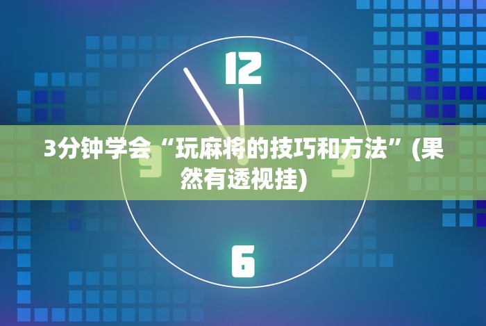 3分钟学会“哥哥杭州麻将有挂吗”开挂(透视)辅助